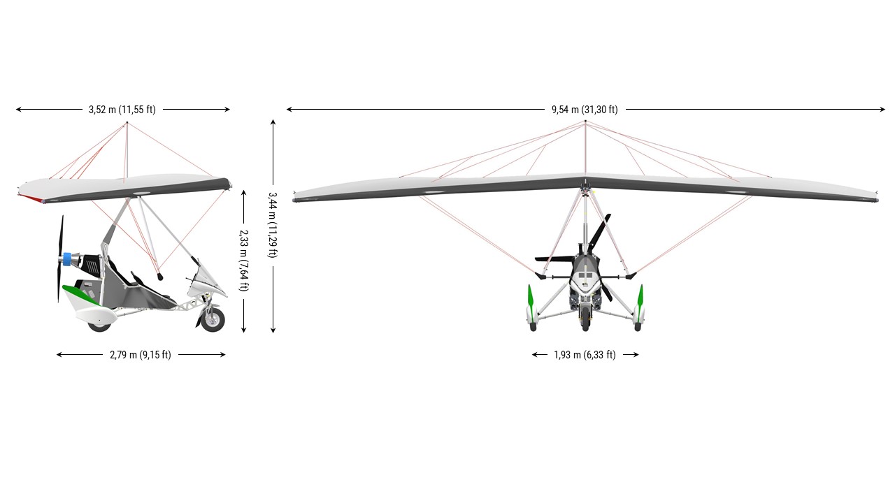 Également disponible en version SP (Short Pack), l’iFun 16, équipée de haubans rigides, se replie sur le tricycle en quelques minutes. Parfait pour réduire l’espace de stockage de votre ULM.